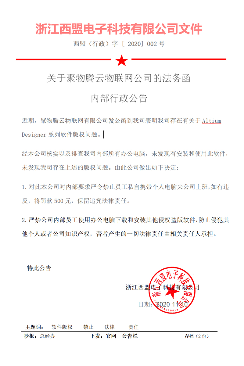 軟件法務函內部公告