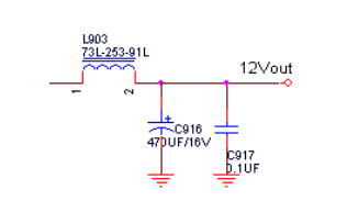因為輸出攪擾的頻譜相當豐富,從幾十赫茲到幾十兆赫茲均含分量。因為在高頻的情況下,濾波電容等效由純電容(C)、等效串聯電阻(RES)和等效串聯電感(LES)構成的串聯電路。在作業頻率f超過電容器的自諧振頻率fr時,電容器就起到電感的作用。值大的濾波電容對低頻攪擾比較敏感,相反,值小的濾波電容吸收高頻攪擾的作用比較好。因此不能光采用大電解電容濾波C916,還有必要加接自諧振頻率很高的陶瓷電容器C917