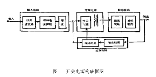開關(guān)電源就是采用半導(dǎo)體器件去作為開關(guān)元件,通過周期性的開關(guān),控制開元件來調(diào)整輸出電壓。開關(guān)電源的構(gòu)成框圖如圖1所示,它由輸入電路、變換電路、輸出電路和控制電路等組成。功率變換是其核心部分,主要由開關(guān)電路和變壓器組成。為了滿足高功率密度的要求,變換器需要工作在高頻狀態(tài),開關(guān)晶體管要采用開關(guān)速度高、導(dǎo)通和關(guān)斷時(shí)間短的晶體臂,最典型的功率開關(guān)晶體管有功率晶體管(CTR)、功率場(chǎng)效應(yīng)管((MOSFET)和絕緣型雙極型晶體管(IGBT)等3種。控制方式分為脈寬調(diào)制、脈頻調(diào)制、脈寬和頻率混合調(diào)制等3種,其中最常用的是脈寬調(diào)制(PWM)方式。