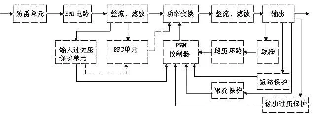 開關(guān)電源的電路組成方框圖如下: