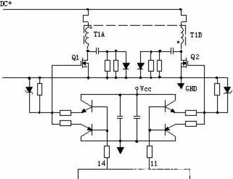 2、 推挽式功率改換電路: Q1和Q2將輪番導(dǎo)通。