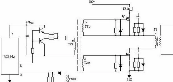 R4、C3、R5、R6、C4、D1、D2組成緩沖器,和開關(guān)電源MOS管并接,使開關(guān)電源管電壓應(yīng)力削減,EMI削減,不發(fā)生二次擊穿。在開關(guān)電源管Q1關(guān)斷時(shí),變壓器的原邊線圈易發(fā)生尖峰電壓和尖峰電流,這些元件組合一同,能很好地吸收尖峰電壓和電流。從R3測(cè)得的電流峰值信號(hào)參加當(dāng)前工作周波的占空比操控,因此是當(dāng)前工作周波的電流約束。當(dāng)R5上的電壓到達(dá)1V時(shí),UC3842停止工作,開關(guān)電源管Q1當(dāng)即關(guān)斷。R1和Q1中的結(jié)電容CGS、CGD一同組成RC網(wǎng)絡(luò),電容的充放電直接影響著開關(guān)電源管的開關(guān)電源速度。R1過(guò)小,易引起振動(dòng),電磁干擾也會(huì)很大;R1過(guò)大,會(huì)降低開關(guān)電源管的開關(guān)電源速度。Z1通常將MOS管的GS電壓約束在18V以下,然后保護(hù)了MOS管。