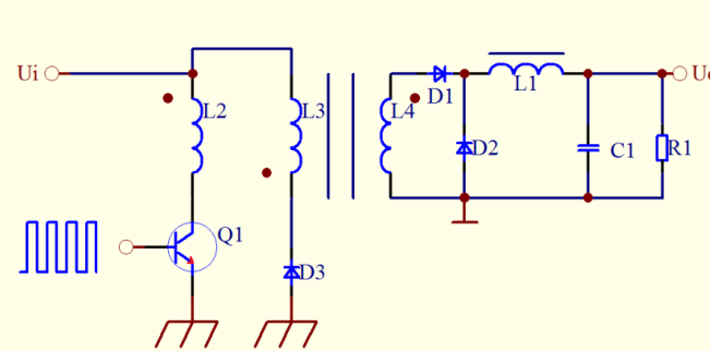 這種開關(guān)電源電路,輸出功率較大(不管Q1導(dǎo)通與截止,都有能量傳遞到負(fù)載上)―但是存在問題是:變壓器結(jié)構(gòu)雜亂,體積較大,所以其實(shí)踐使用很少。