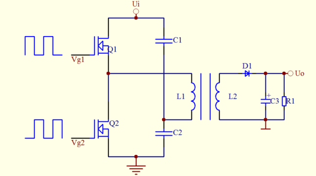 半橋式:相對(duì)于全橋式少用了一半的管子,L1兩端電壓為開關(guān)電源電壓的一半,可是要提高變壓器的匝數(shù)比才能夠滿足要求。同時(shí)也給驅(qū)動(dòng)電路的規(guī)劃帶來了便利。只需要兩路阻隔并且不共地的信號(hào)即可。
