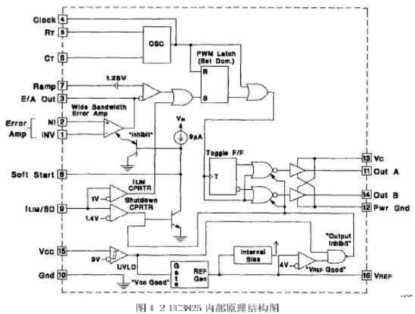 根據我們所設計的開關電源系統的要求,我們選的PWM集成控制器為UC3825。下面將詳細介紹此芯片的主要特點、工作原理和應用及調試。