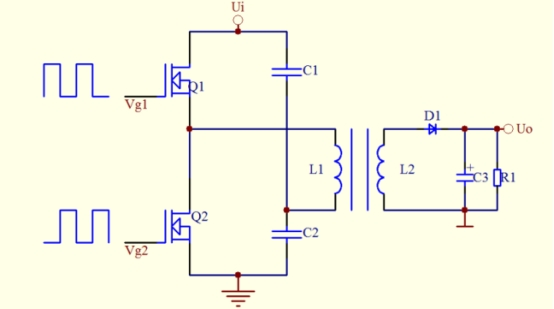 該種開關(guān)電源成本較低,能夠輸出多組不同的電壓,電壓調(diào)整方便,因而運用非常廣泛。首要缺點是:紋波電壓較大(一個周期僅作業(yè)半個周期左右)。另一點便是,當(dāng)Q截止時,Q1接受很大的反向電壓。U=2Ui,所以Q1選擇耐壓較大的。