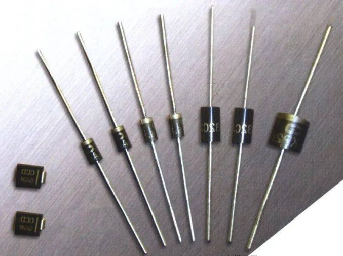 3.肖特基二極管(SBD)-全稱為肖特基勢(shì)壘二極管,它歸于低電壓、低功耗、大電流、超高速半導(dǎo)體功率器材,其反向恢復(fù)時(shí)間可小到幾納秒,正向?qū)▔航祪H為0.4V左右,整流電流可達(dá)幾十至幾百安培。特別合適做開關(guān)電源充電器低壓輸出電路中的整流二極管、續(xù)流二極管。