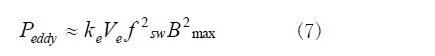 渦流損耗比磁滯損耗小得多,但跟著作業頻率的提高而敏捷添加,如式(7)所示。