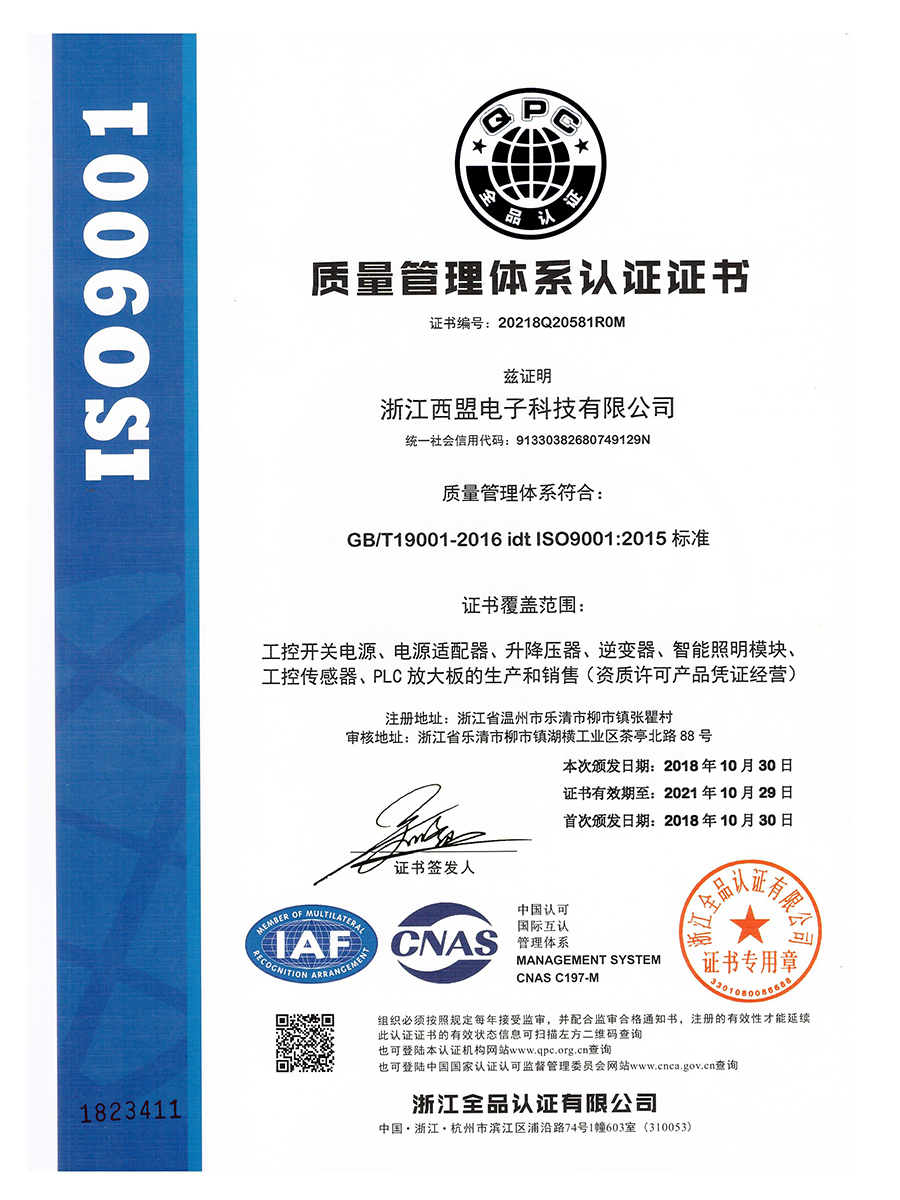 質(zhì)量管理體系認(rèn)證證書